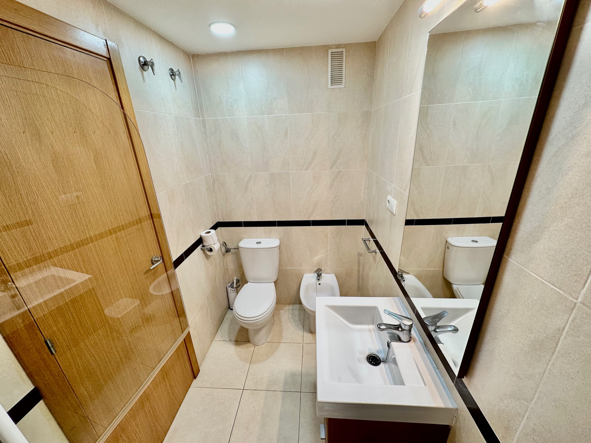 con plato de ducha. Cocina y salón equipados. Tiene aire acondicionado para frío/calor.